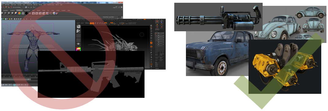 在製作之前,你要先規劃好要從哪個部件開始製作,先做什麼,後做什麼,哪裡是視覺焦點,哪邊可以放掉,哪邊要用的面更多,哪邊要減面,哪邊用貼圖製作,哪邊要用模型做出來...。接下來,每個步驟預計要花費多少時間。把以上的問題做成大綱寫在紙上提醒你自己。在問一下自己製作難處可能會在哪裡 ? 還缺什麼參考圖片 ? 最後在腦中想像出最終完成品的樣子。其實這樣的事先規劃,在你養成習慣之後,不會花超過20分鐘。但是它會幫助你從大局來看整個製作,不要一開始就太拘泥在細節上,而忽略了整體大型,進而耗費不必要的時間。